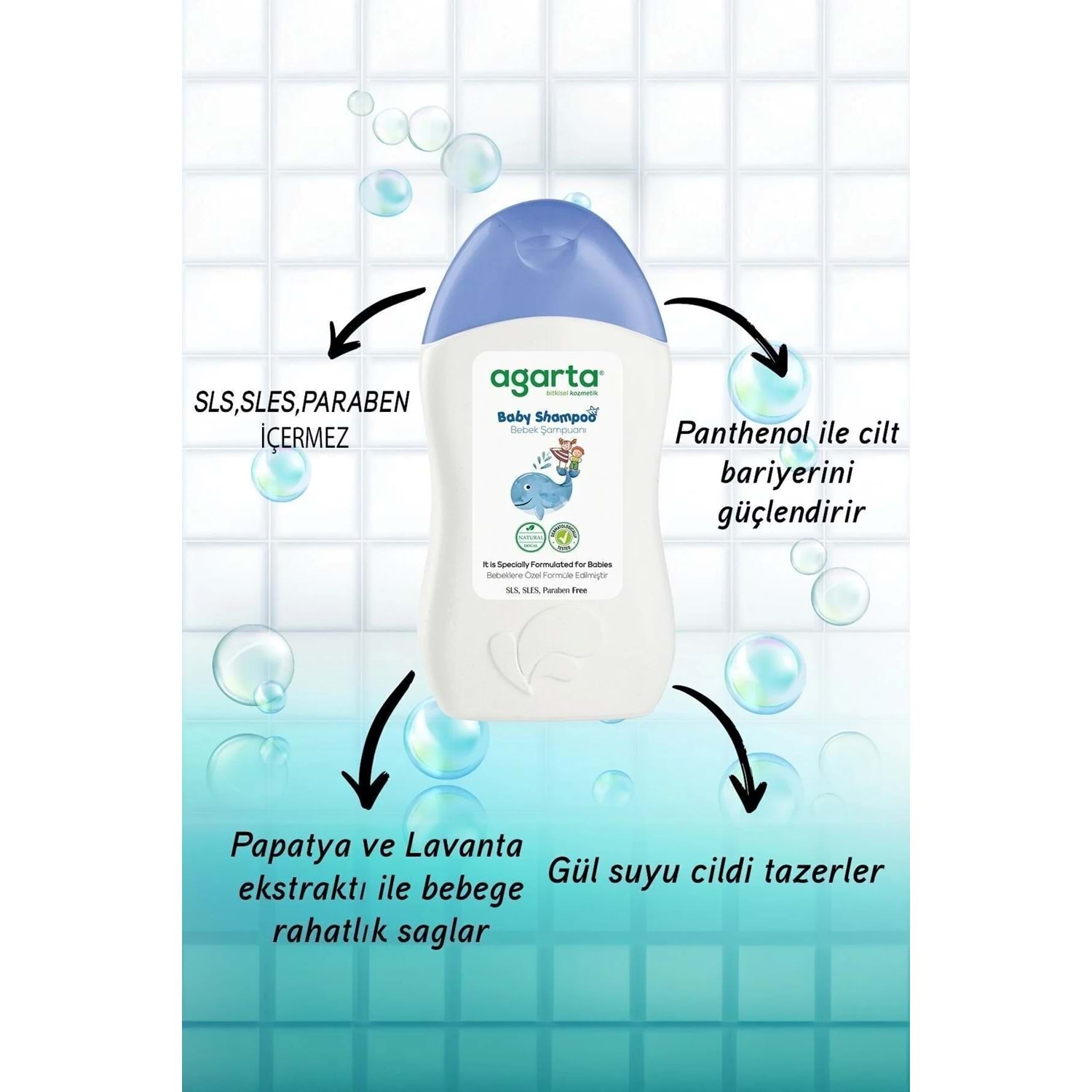 Agarta Doğal Erkek Bebek Çocuk Şampuanı Saç ve Vücut 400 ML