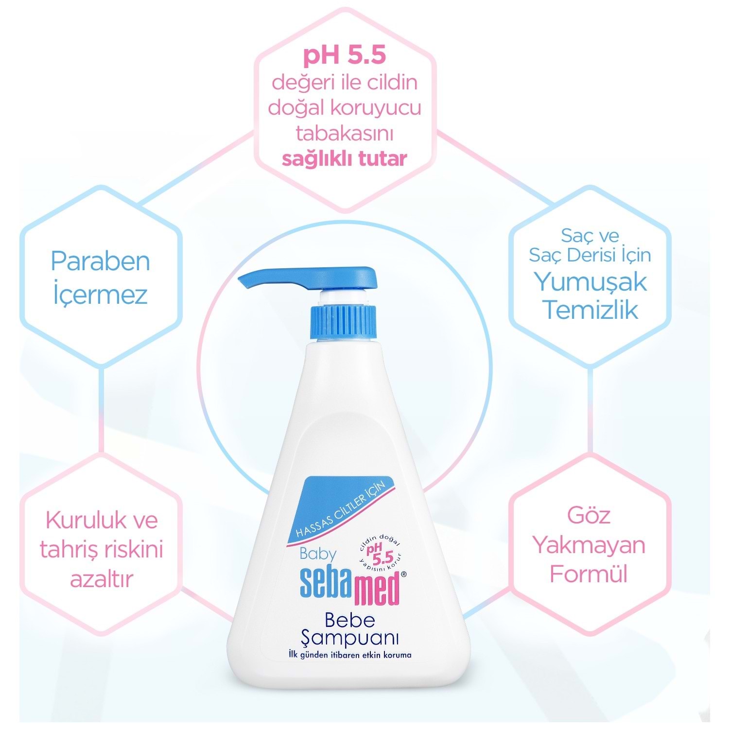 Sebamed Bebek Şampuanı, hassas bebek cildi ve saç derisi için özel olarak geliştirilmiştir. Sabun ve alkali içermeyen formülü sayesinde saçları nazikçe temizlerken, göz yakmayan yapısıyla banyo zamanını keyifli hale getirir.