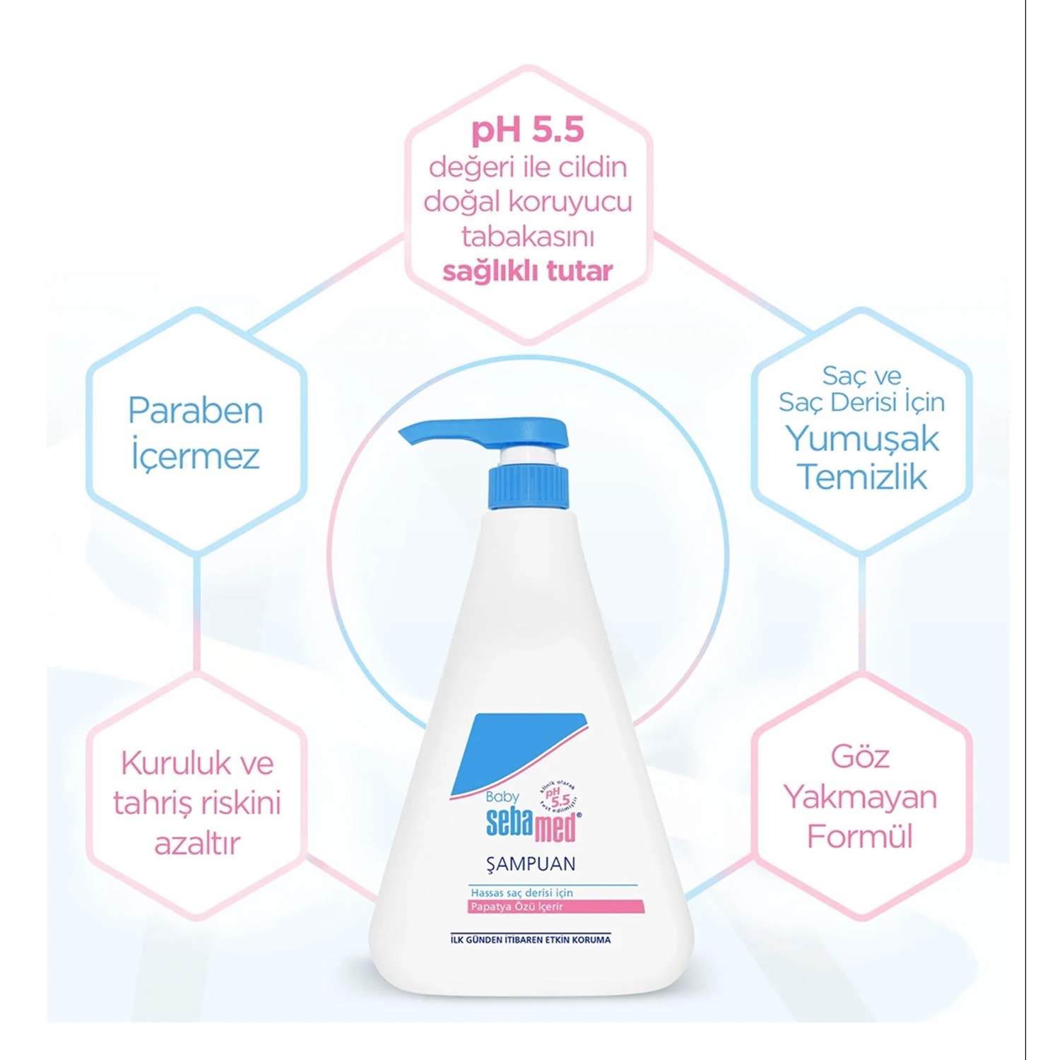 Sebamed Bebek Şampuanı 750 ml pompalı, hassas bebek cildi ve saç derisi için özel geliştirilmiş sabun ve alkali içermeyen formüle sahiptir. Göz yakmayan ve dermatolojik olarak test edilmiş yapısıyla bebeklerin saçlarını nazikçe temizler. Pratik pompalı şişesi ile kolay kullanım ve ekonomik fırsat paketi sunar.