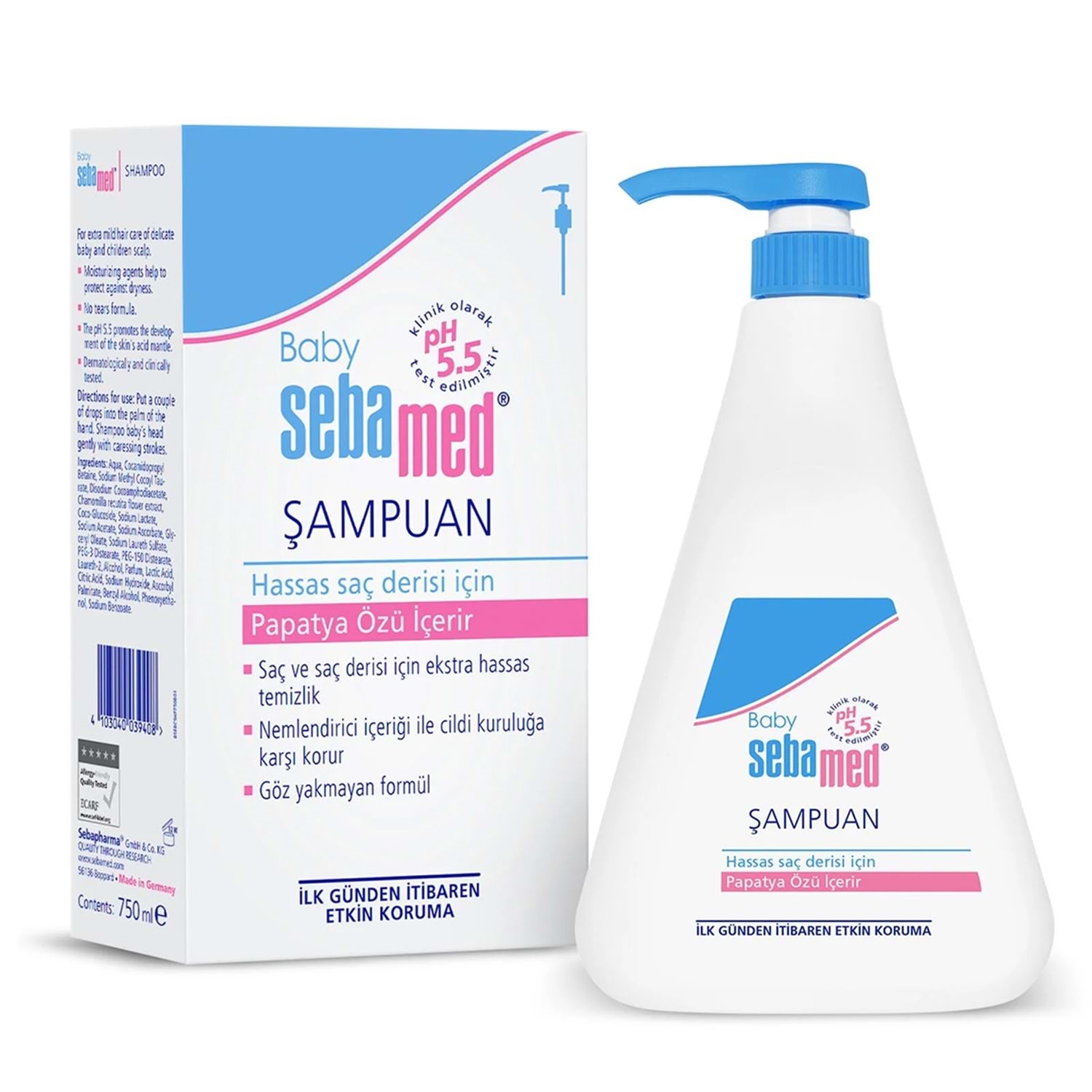 Sebamed Bebek Şampuanı 750 ml pompalı, hassas bebek cildi ve saç derisi için özel geliştirilmiş sabun ve alkali içermeyen formüle sahiptir. Göz yakmayan ve dermatolojik olarak test edilmiş yapısıyla bebeklerin saçlarını nazikçe temizler. Pratik pompalı şişesi ile kolay kullanım ve ekonomik fırsat paketi sunar.