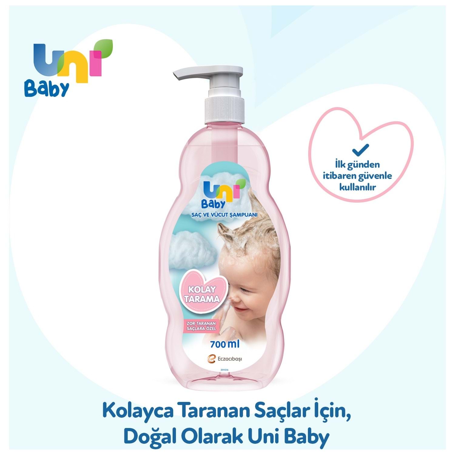 Uni Baby Bebek Kolay Tarama Saç ve Vücut Şampuanı 700ML (Pompalı) (12 Li Set)