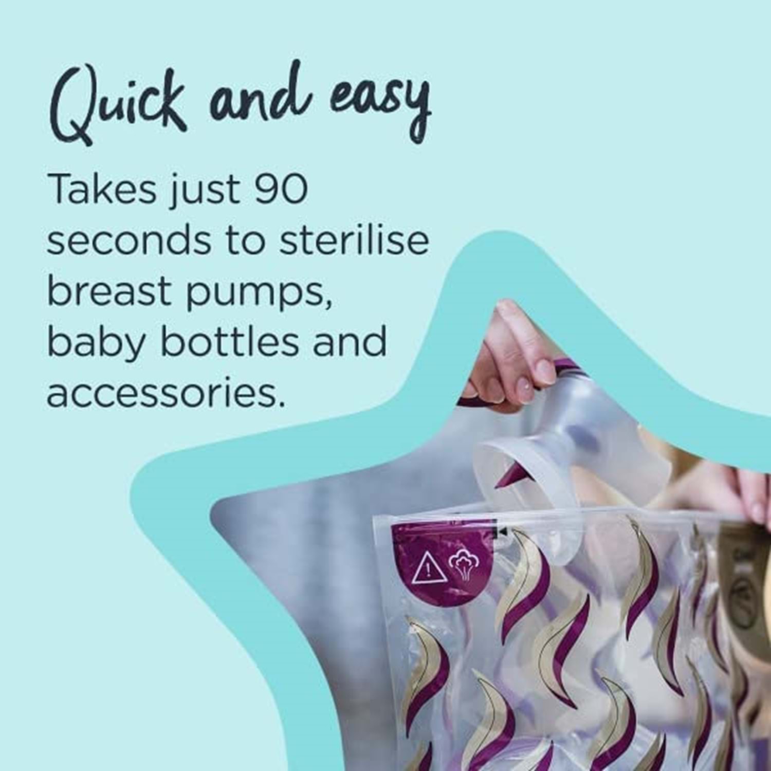 Torba başına 30 uygulama? Her sterilizatör torbasını 30 kata kadar tekrar kullanabilirsiniz, evde veya yolda süt pompaları ve bebek beslenme aksesuarlarını sterilize etmek için hızlı ve rahat bir seçenek