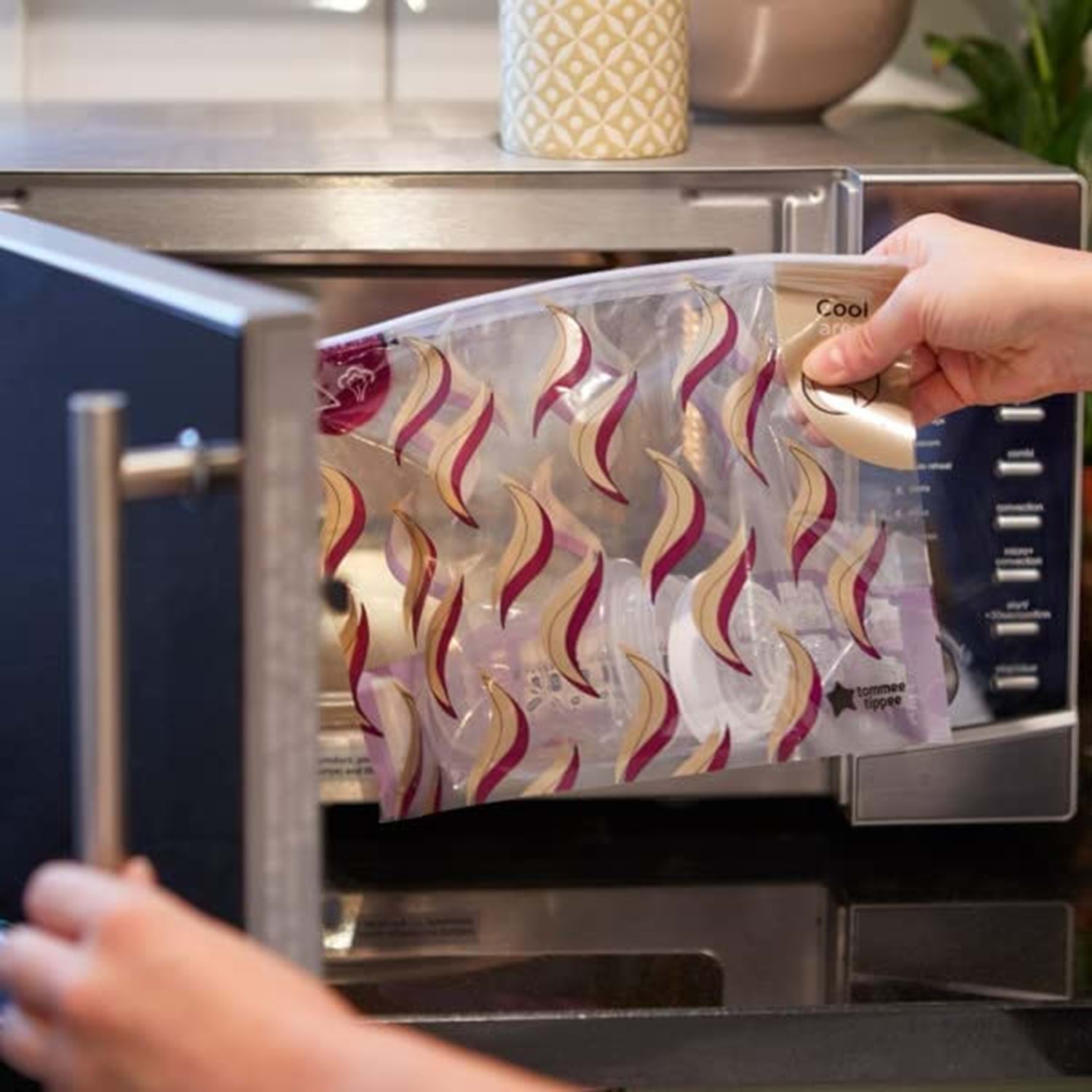 Seyahat ve mikrodalga için bu tekrar kullanılabilir sterilizatör torbaları, göğüs pompası, şişe veya diğer bebek besleme ürünlerinizi steril bir ortamda saklayabilirsiniz.
