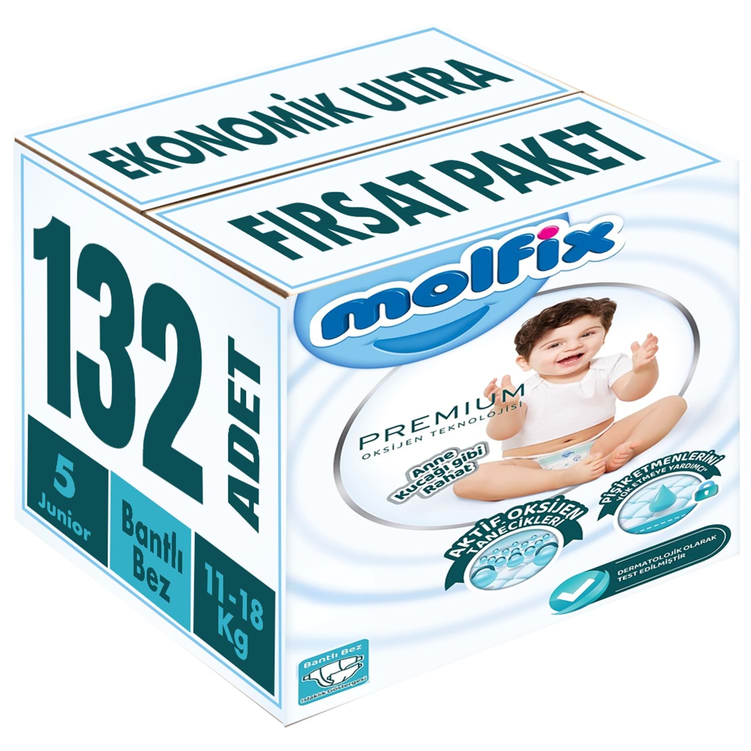 Molfix Premium Bebek Bezi Beden:5 (11-18KG) Junior 132 Adet Ekonomik Ultra Fırsat Pk