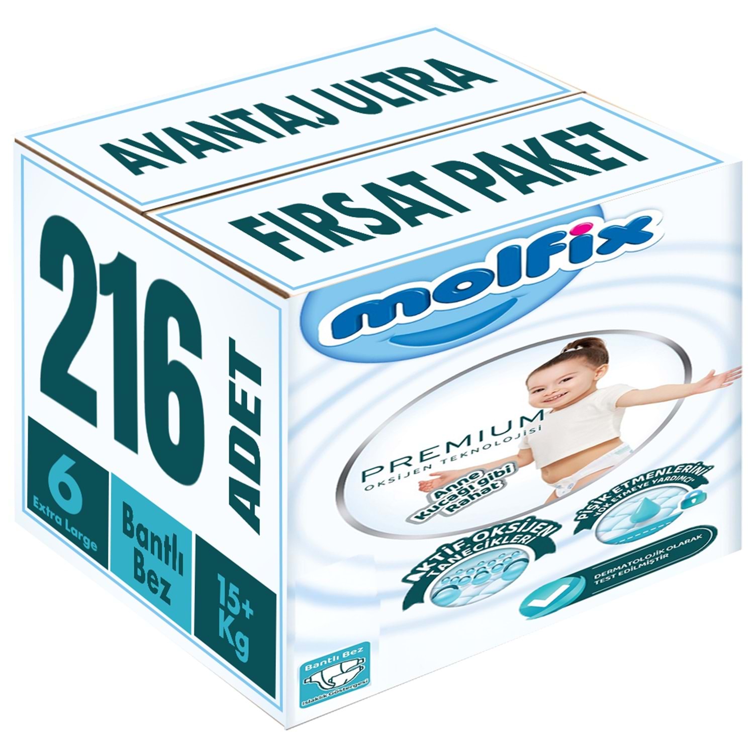 Molfix Premium Bebek Bezi Beden:6 (15+KG) Extra Large 216 Adet Avantaj Ultra Fırsat Pk