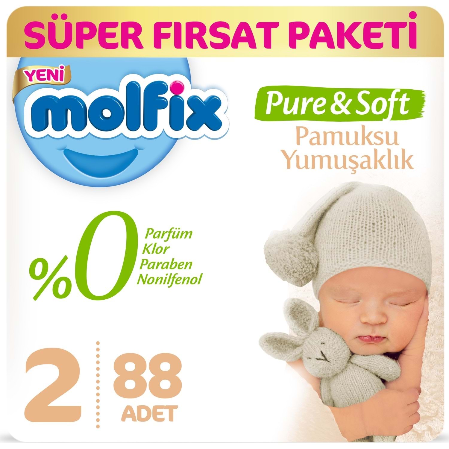 Molfix Pure&Soft Bebek Bezi Beden:2 (3-6Kg) Mini 88 Adet Süper Fırsat Pk