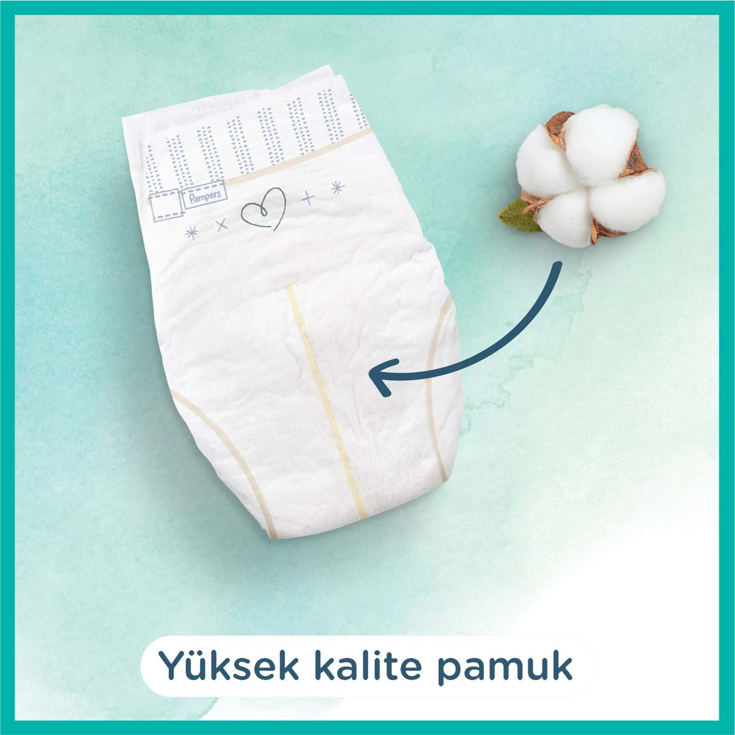 Prima Pampers Harmonie bebek bezleri premium pamuk, yumuşak bitki bazlı lifler ve dikkatle seçilmiş malzemelerle üretilmiş ve dermatolojik olarak test edilmiştir.