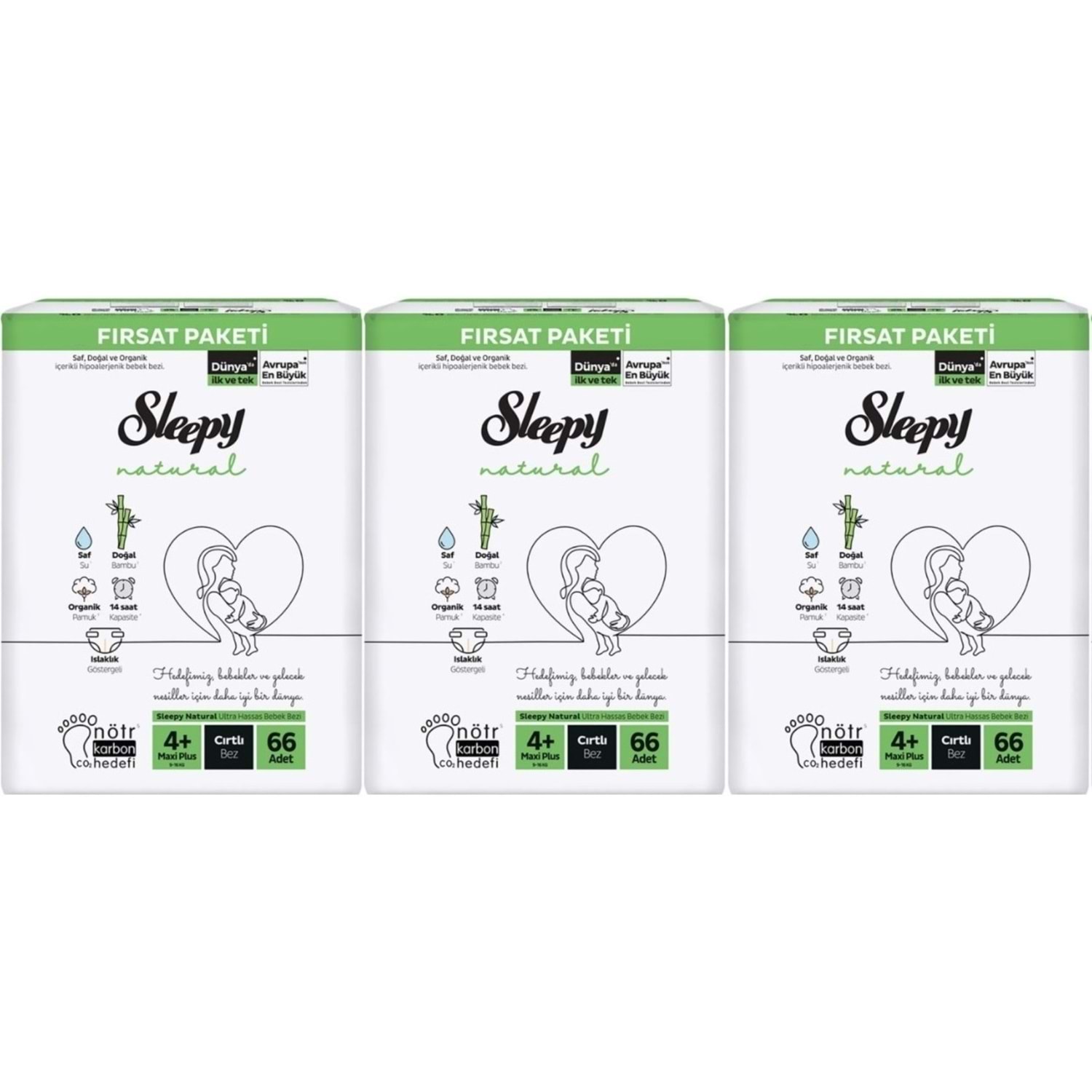 Sleepy Bebek Bezi Naturel Beden:4+ (9-16KG) Maxi Plus 198 Adet Aylık Fırsat Pk
