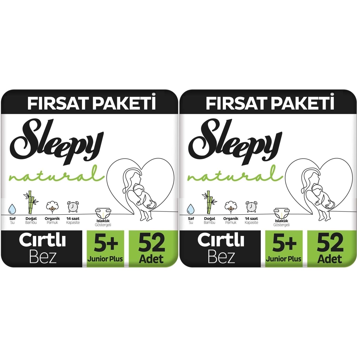 Sleepy Bebek Bezi Naturel Beden:5+ (13-20Kg) Junior Plus 104 Adet Ekonomik Fırsat Pk