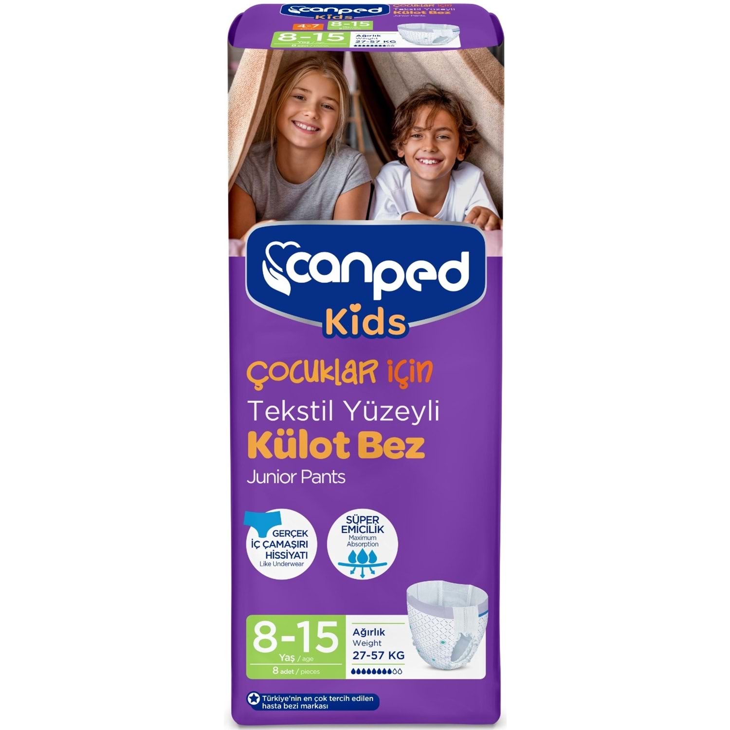 Canped Kids Çoçuklar İçin Külot Bez Tekstil Yüzeyli Yaş:8-15 (27-57Kg) 24 Adet (3Pk*8)