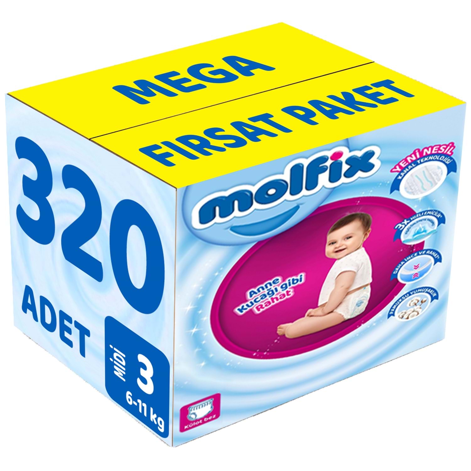 Molfix Külot Bebek Bezi Beden:3 (6-11KG) Midi 320 Adet Mega Fırsat Pk