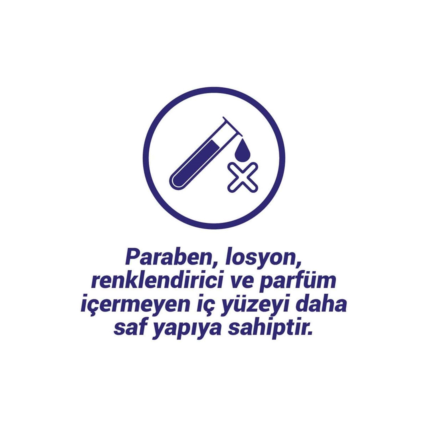 Paraben, losyon, renklendirici ve parfüm içermeyen iç yüzeyi daha saf yapıya sahiptir.