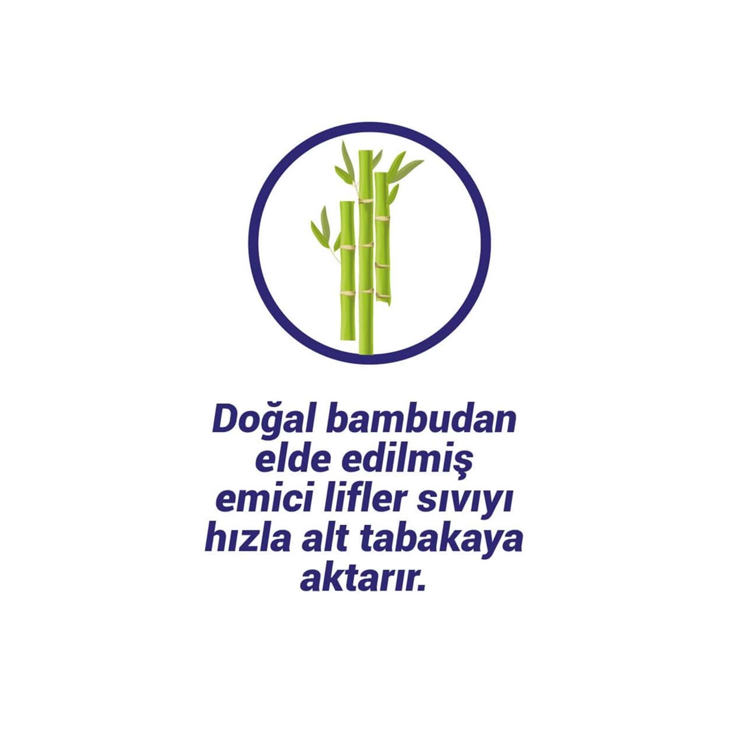 Doğal bambudan elde edilmiş emici lifler sıvıyı hızla alt tabakaya aktarır.