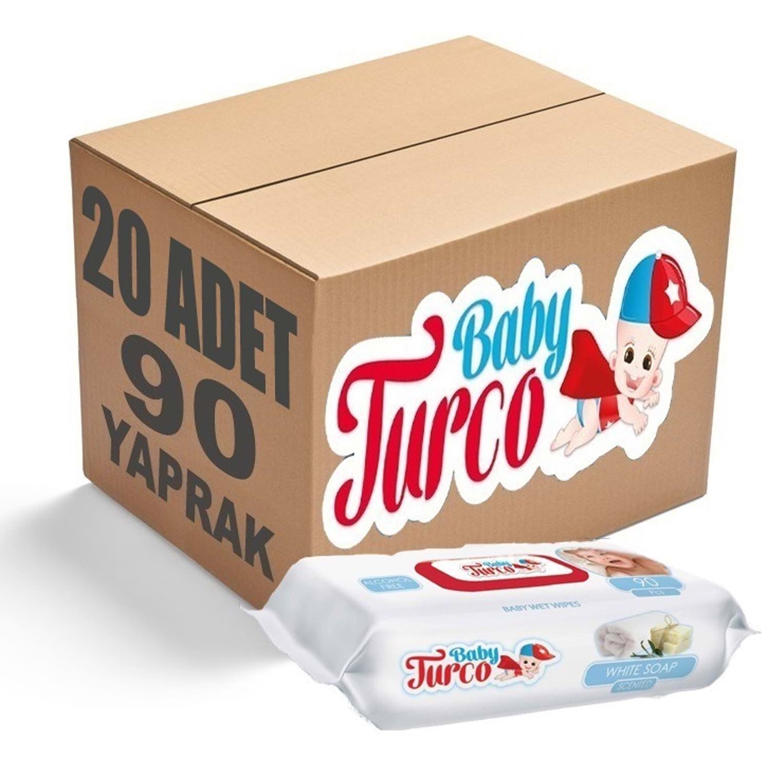 Baby Turco Islak Havlu Mendil 90 Yaprak 20 Li Set Beyaz Sabun Kokulu Plastik Kapaklı