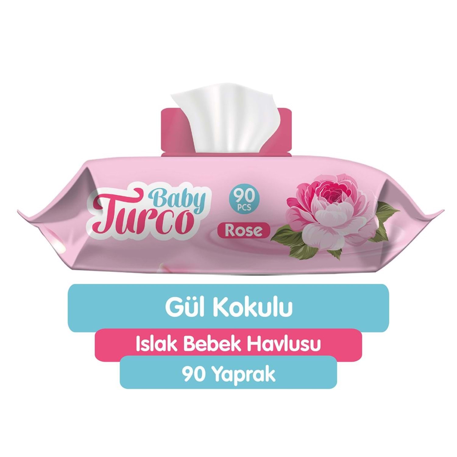 Baby Turco Islak Havlu Mendil 90 Yaprak Gül/Rose Plastik Kapaklı Tekli Pk