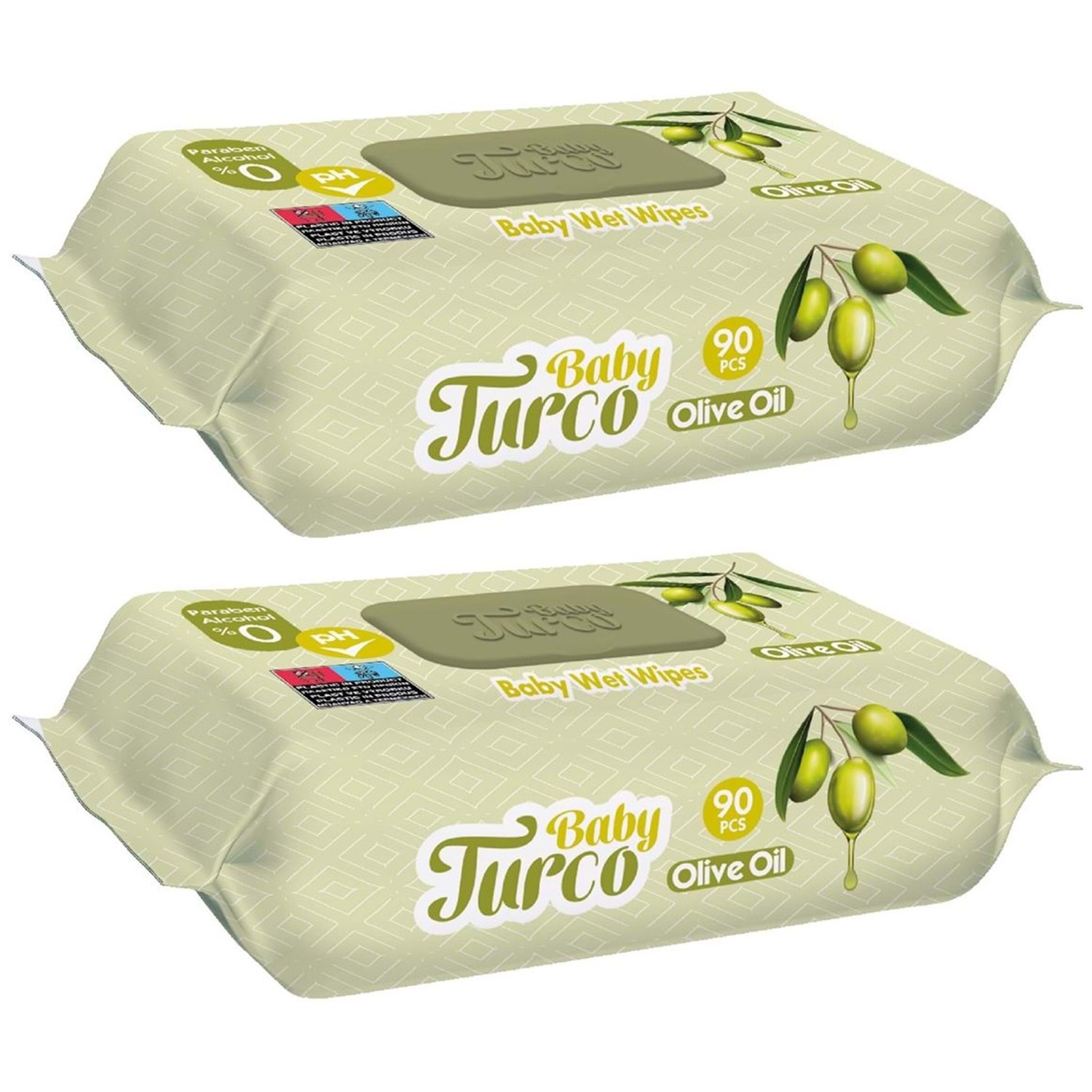 Baby Turco Islak Havlu Mendil 90 Yaprak Zeytinyağlı 2 Li Set 180 Yaprak Plastik Kapaklı