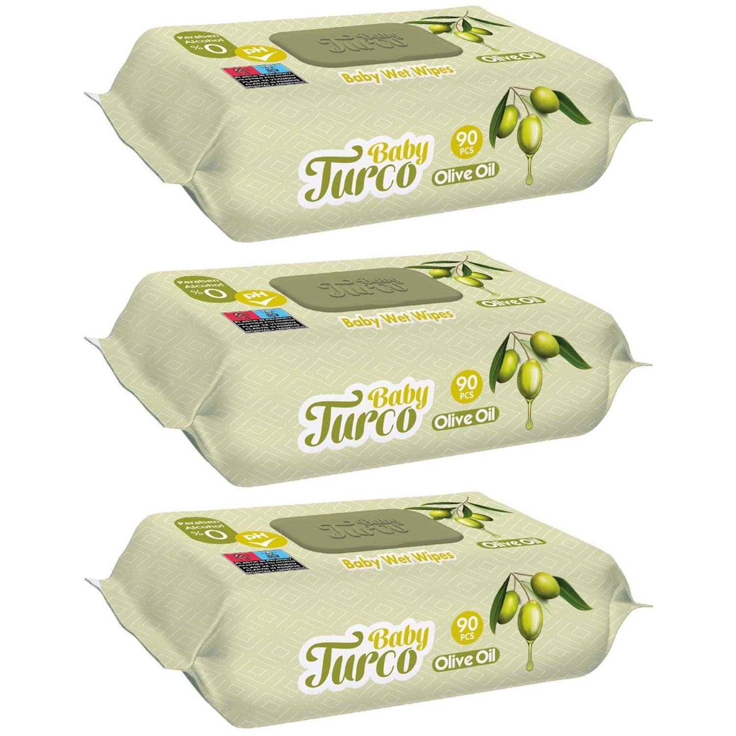 Baby Turco Islak Havlu Mendil 90 Yaprak Zeytinyağlı 3 Lü Set 270 Yaprak Plastik Kapaklı