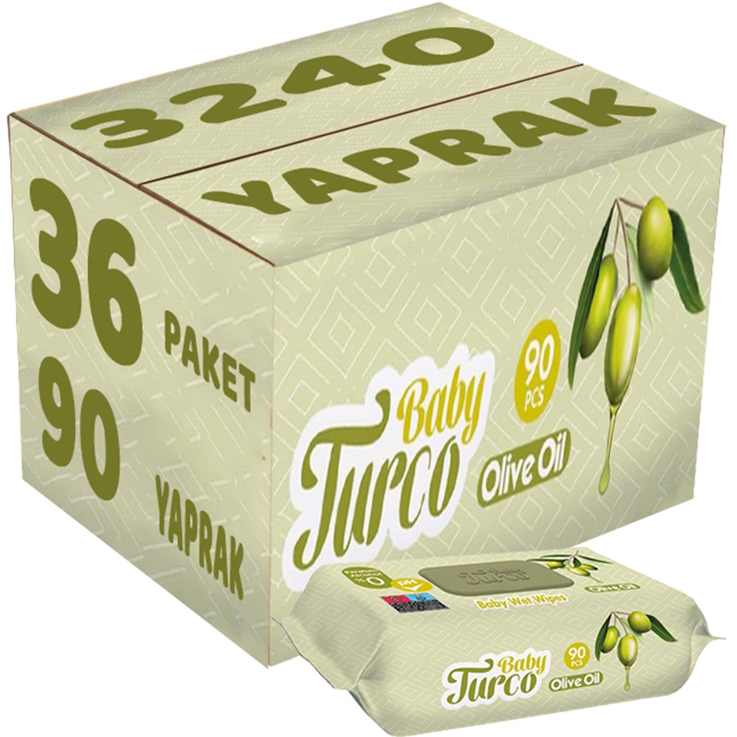 Baby Turco Islak Havlu Mendil 90 Yaprak Zeytinyağlı 36 Lı Set 3240 Yaprak Plastik Kapaklı