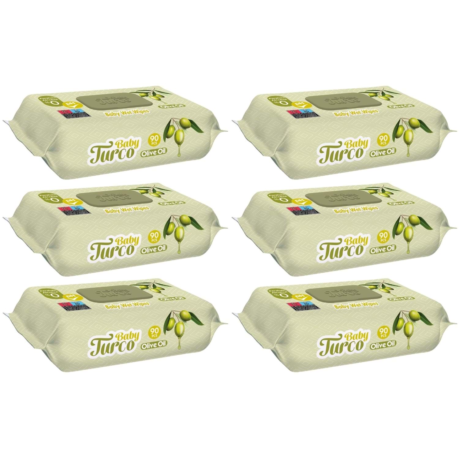 Baby Turco Islak Havlu Mendil 90 Yaprak Zeytinyağlı 6 Lı Set 540 Yaprak Plastik Kapaklı