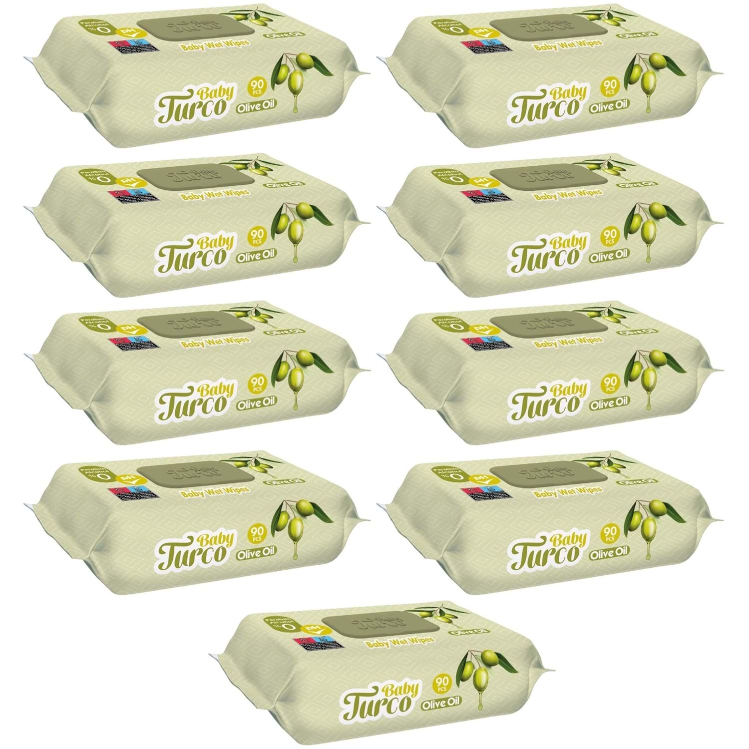 Baby Turco Islak Havlu Mendil 90 Yaprak Zeytinyağlı 9 Lu Set 810 Yaprak Plastik Kapaklı