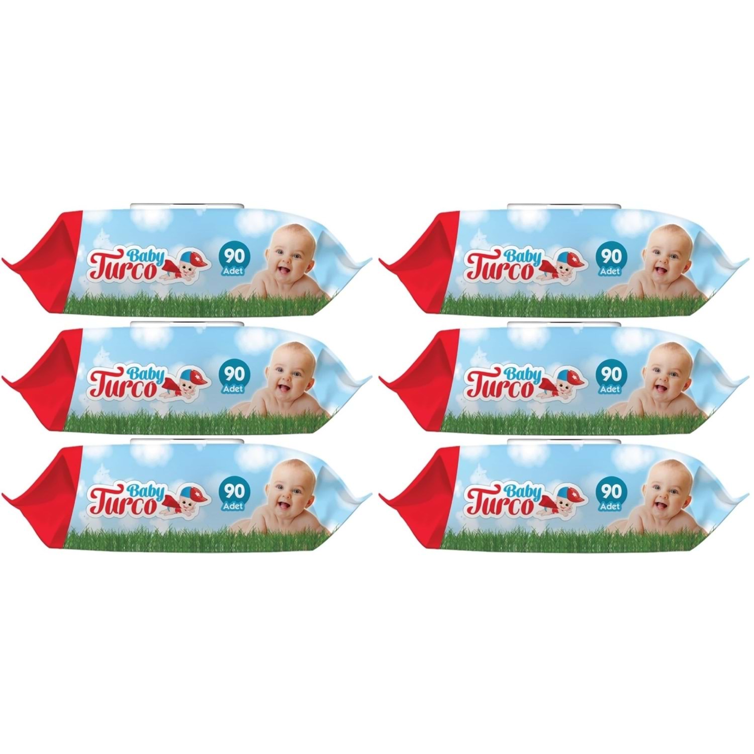 Baby Turco Islak Havlu Mendil Klasik 90 Yaprak 6 Lı Set Plastik Kapaklı 540 Yaprak