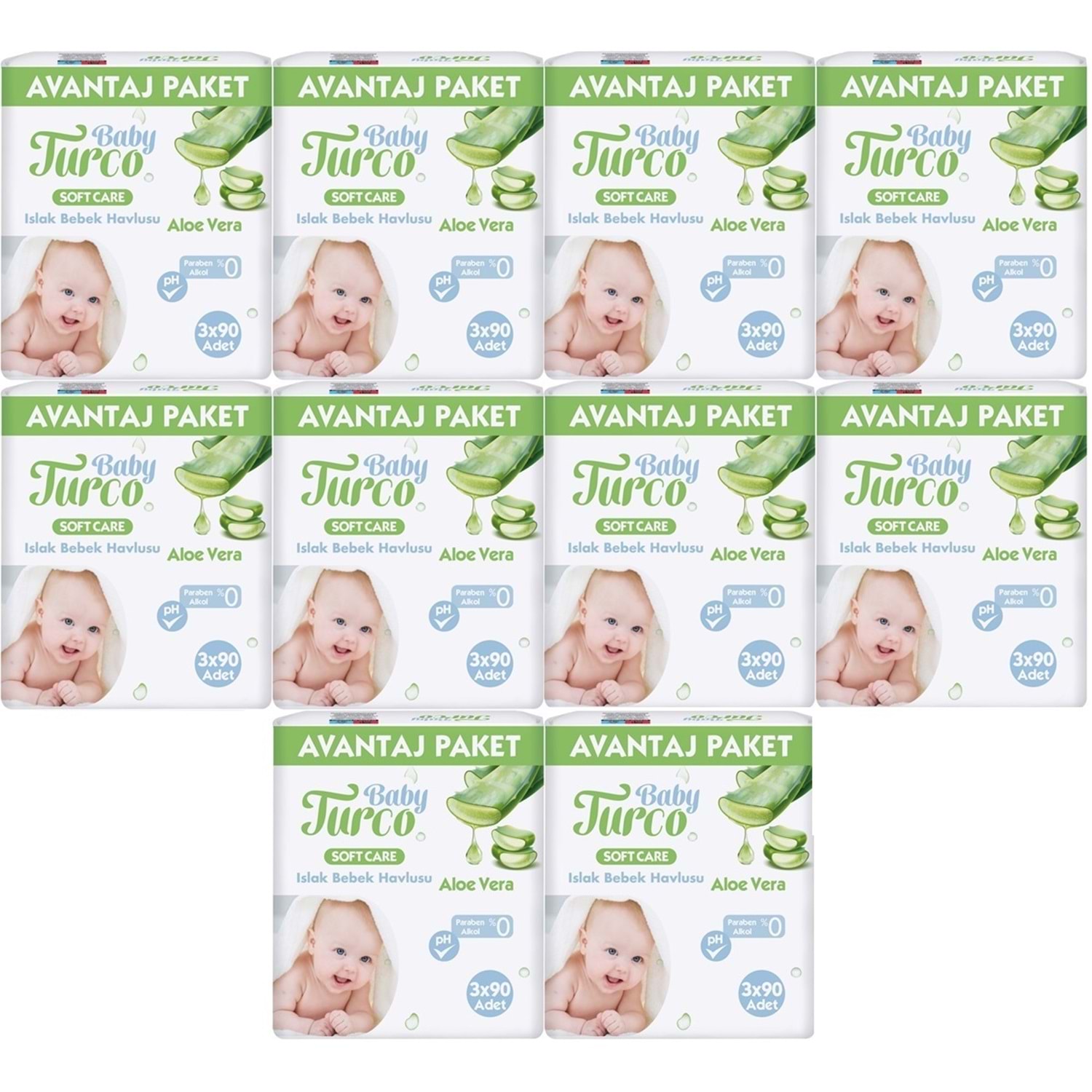 Baby Turco Islak Havlu Mendil Soft Care Aloe Vera 90 Yaprak (30 Lu Set) (10PK*3) 2700 Yaprak Plastik Kapaklı