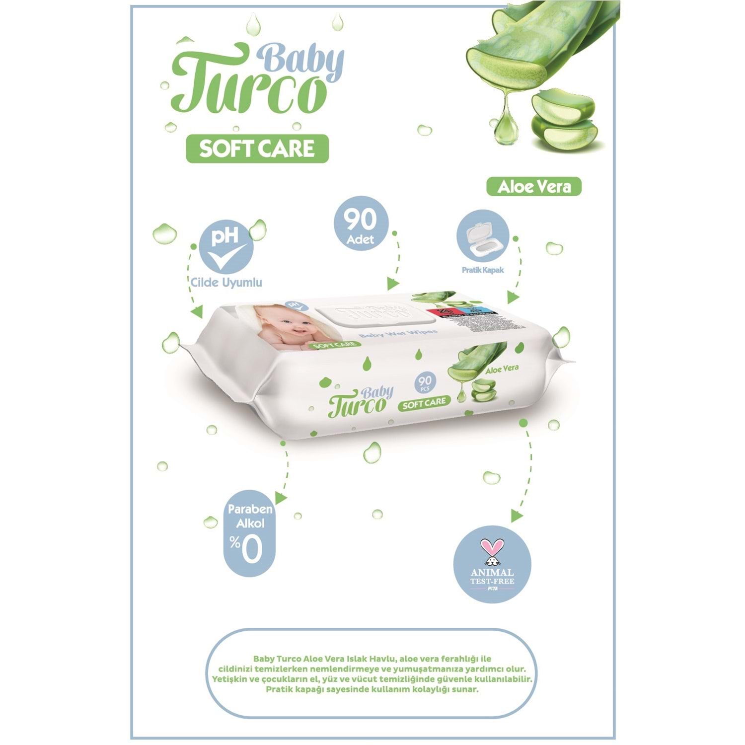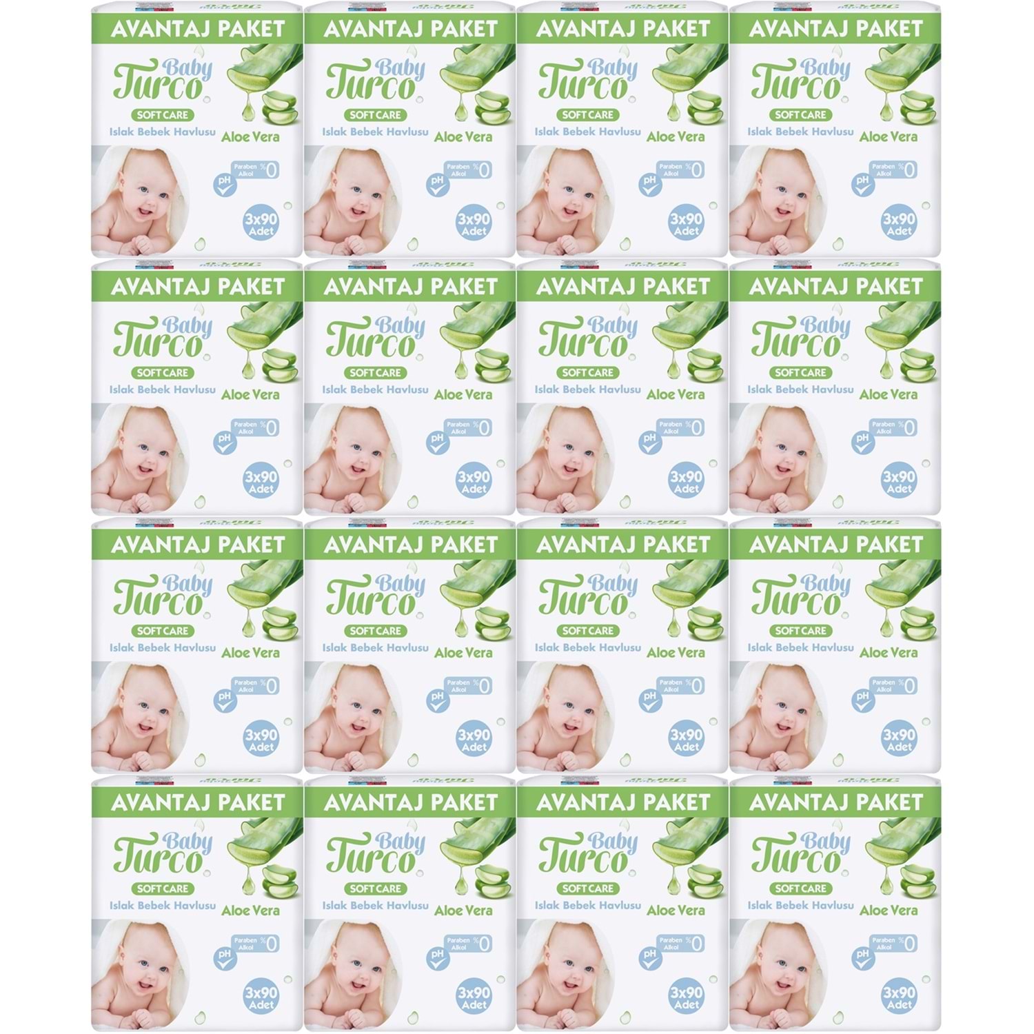 Baby Turco Islak Havlu Mendil Soft Care Aloe Vera 90 Yaprak (48 Li Set) (16PK*3) 4320 Yaprak