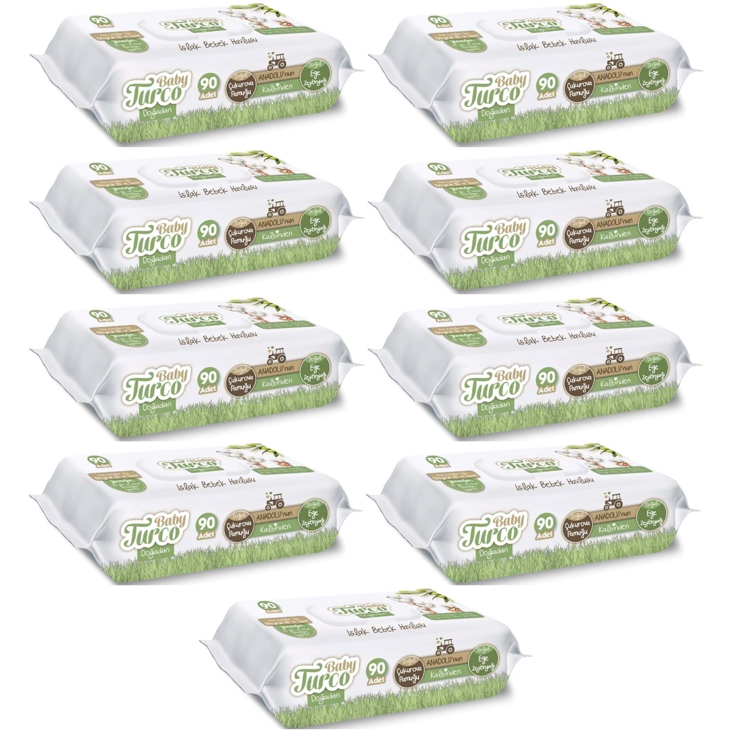 Baby Turco Islak Havlu Mendil Yenidoğan 90 Yaprak Doğadan 9 Lu Set 810 Yaprak Plastik Kapaklı