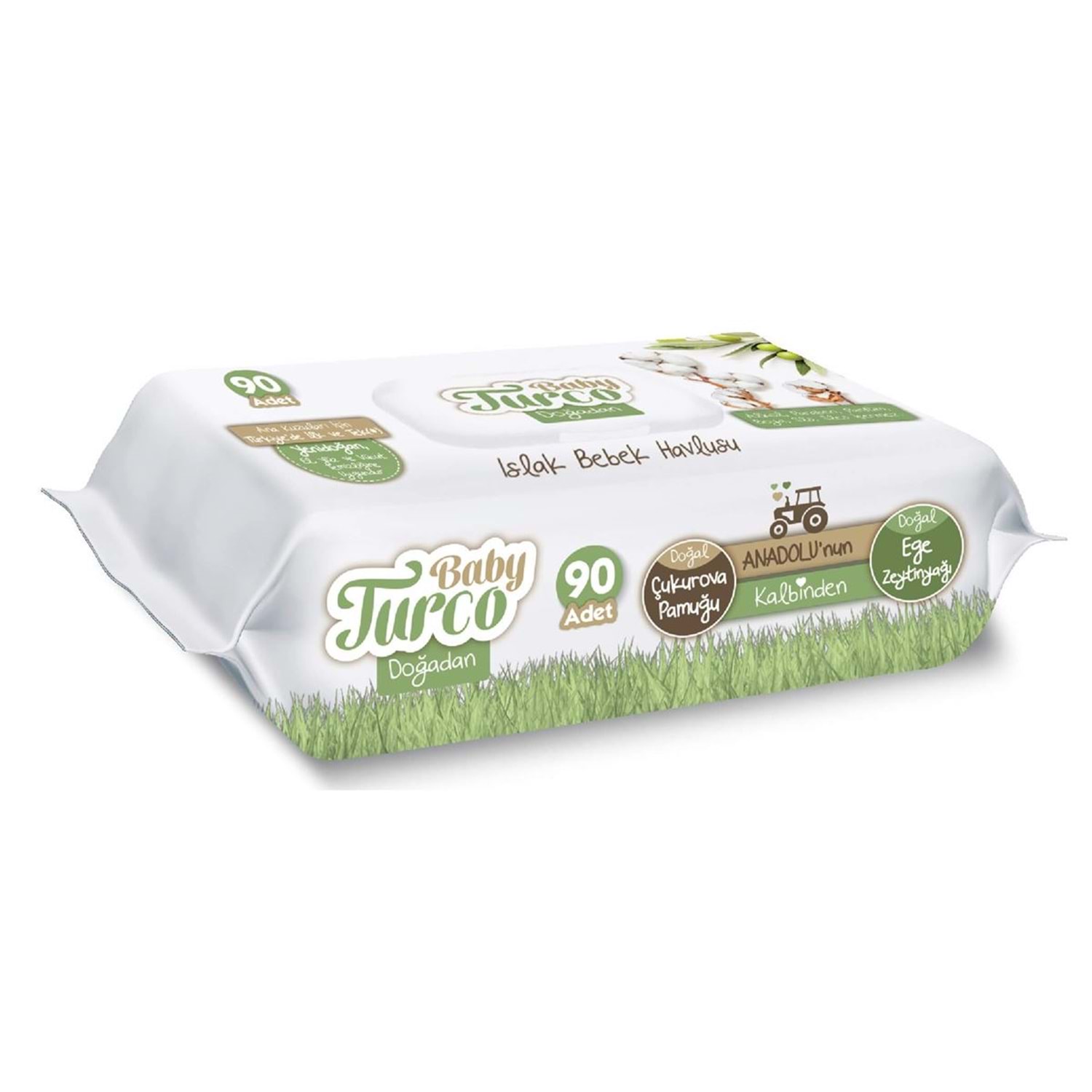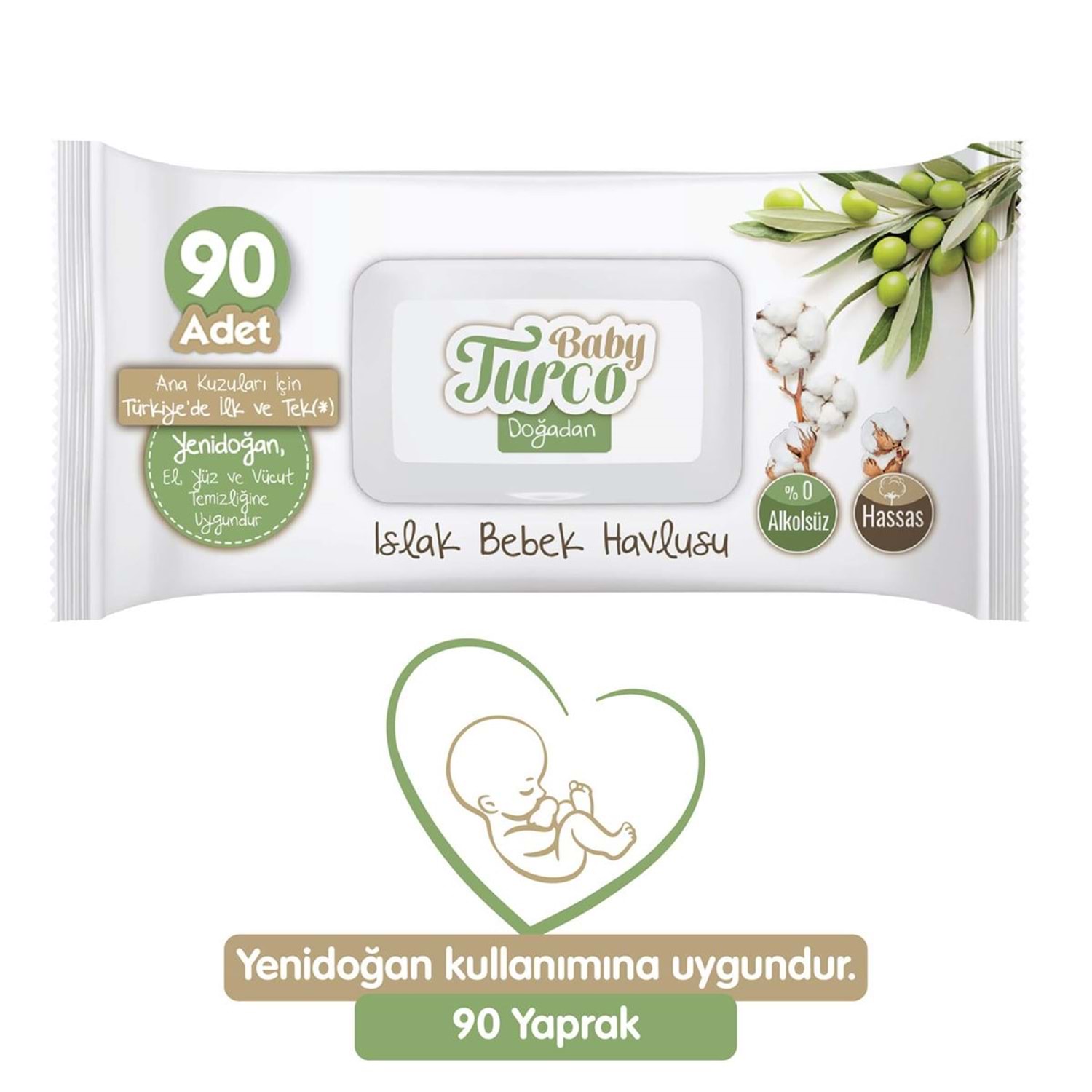 Baby Turco Islak Havlu Mendil Yenidoğan 90 Yaprak Doğadan Plastik Kapaklı Tekli Pk