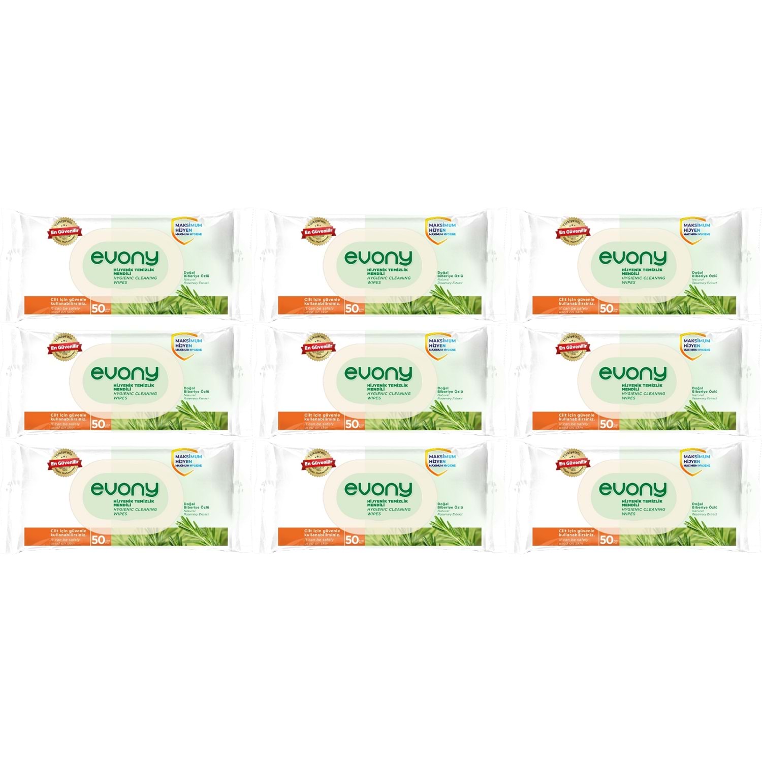 Evony Hijyenik Temizlik Islak Havlu Mendil 50 Yaprak Plastik Kapaklı (9 Lu Set) 450 Yaprak
