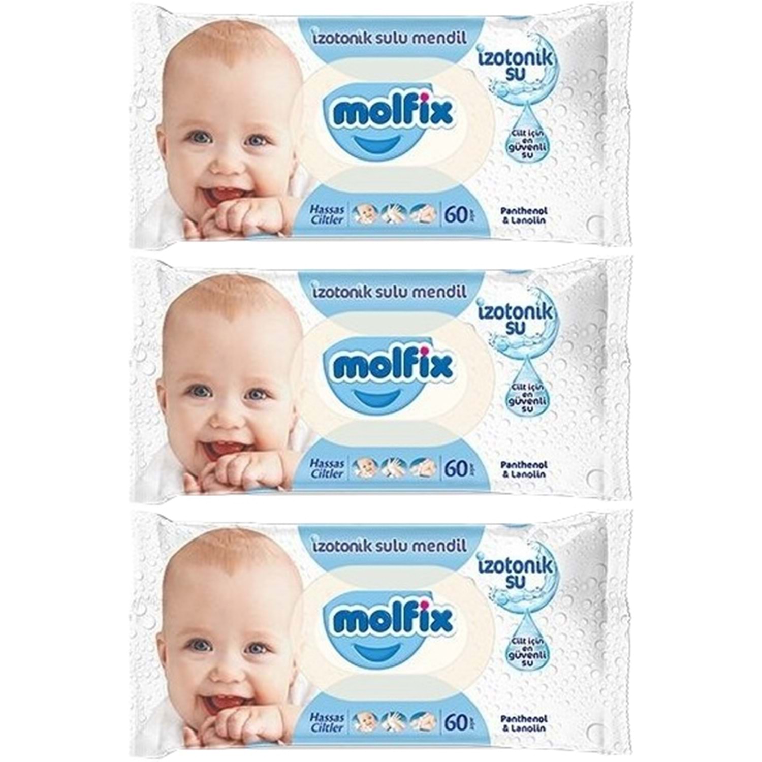 Molfix Islak Havlu Mendil İzotonik Hassas Ciltler 3 Lü Set 60 Yaprak Plastik Kapaklı