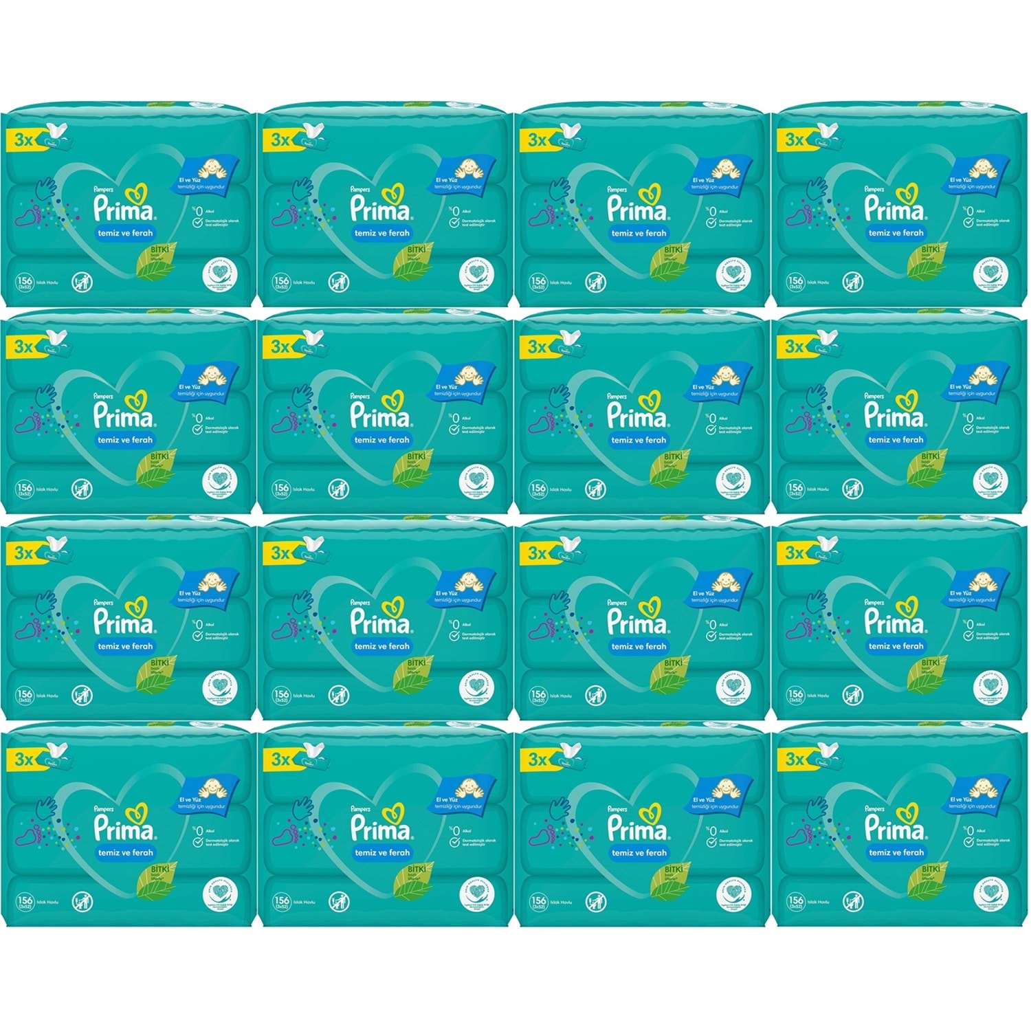 Prima Islak Havlu Mendil Temiz ve Ferah (Bitki Bazlı) 48 Li Set (16PK*3) 2496 Yaprak