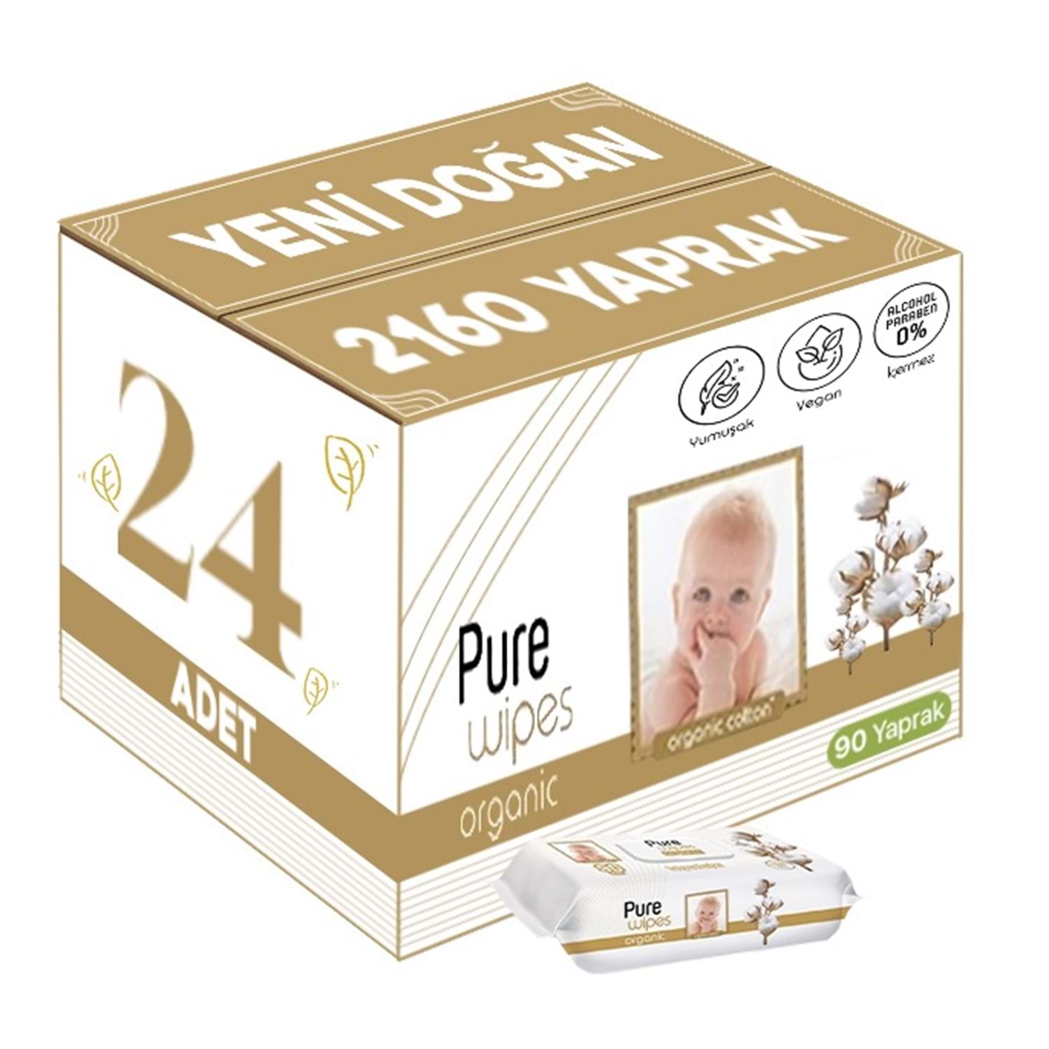Pure Baby Islak Havlu Mendil 90 Yaprak Yenidoğan Organic Pamuklu (24 Lü Set) 2160 Yaprak Plstk Kapak