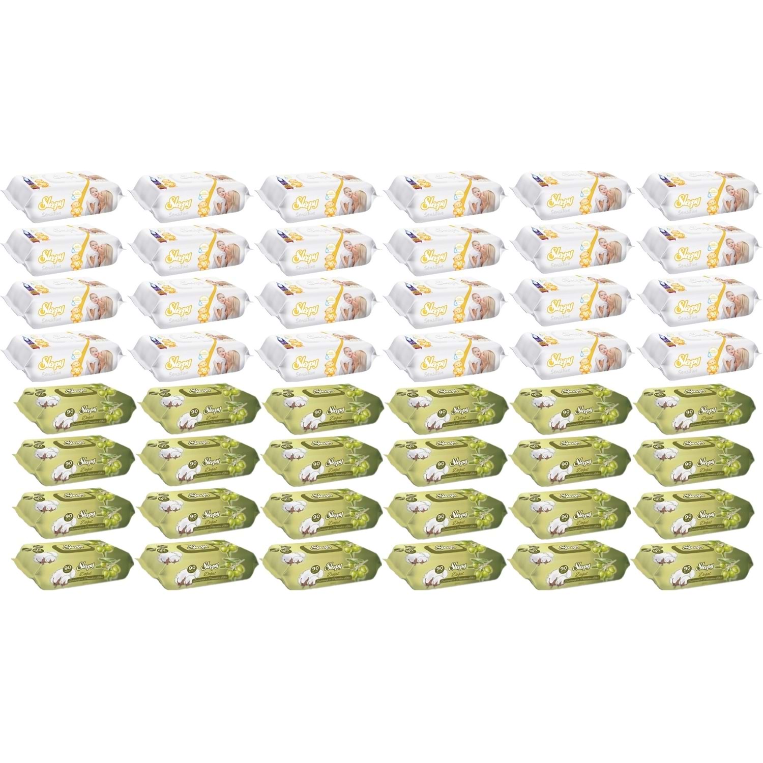 Sleepy Islak Havlu Mendil 90 Yaprak Karma (48 Li Set) Sensitive & Pamuk-Zeytinyağlı 4320 Yaprak