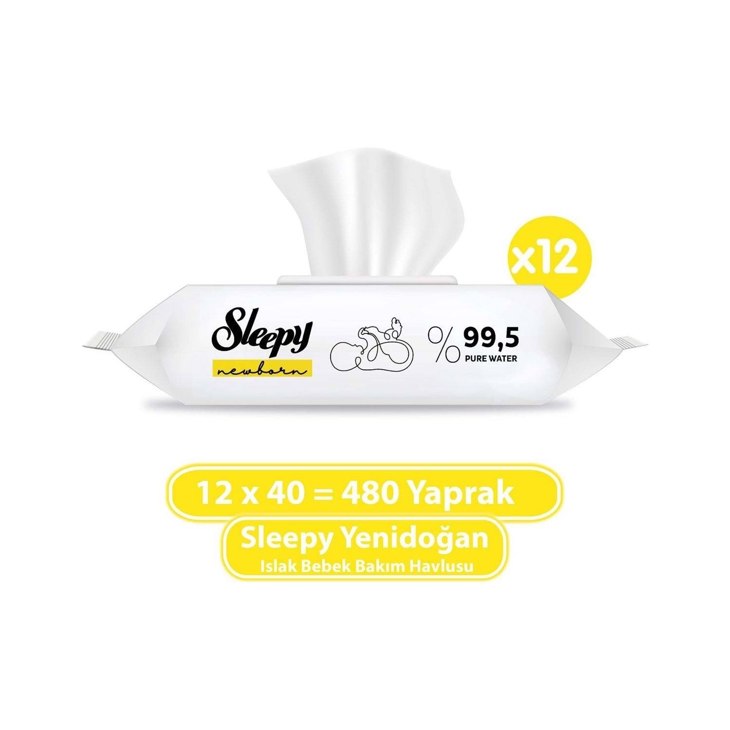 Sleepy Islak Havlu Mendil Pamuklu Yenidoğan Natural Bambu 40 Yaprak 12 Li Set (480 Yaprak)