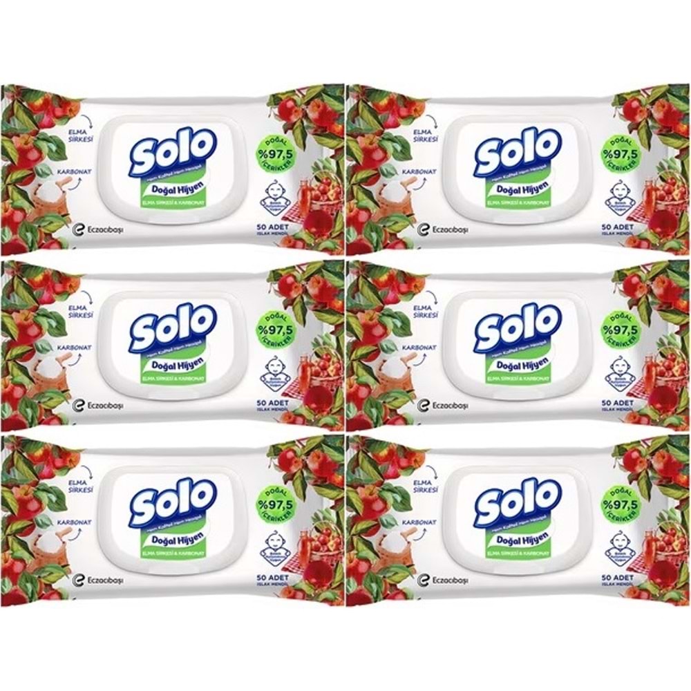Solo Islak Havlu Mendil 50 Yaprak Elma Sirkesi & Karbonat (6 Lı Set) (2PK*3) 300 Yaprak