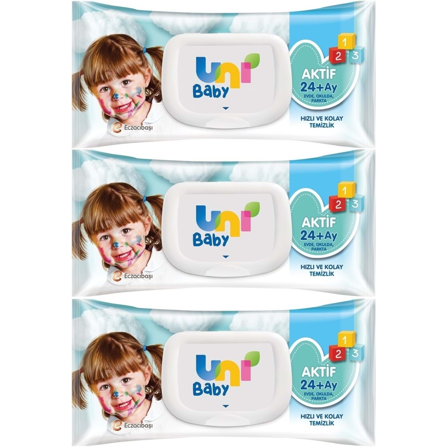 Uni Baby Islak Havlu Mendil 72 Yaprak Aktif (3 Lü Set) 216 Yaprak Plastik Kapaklı