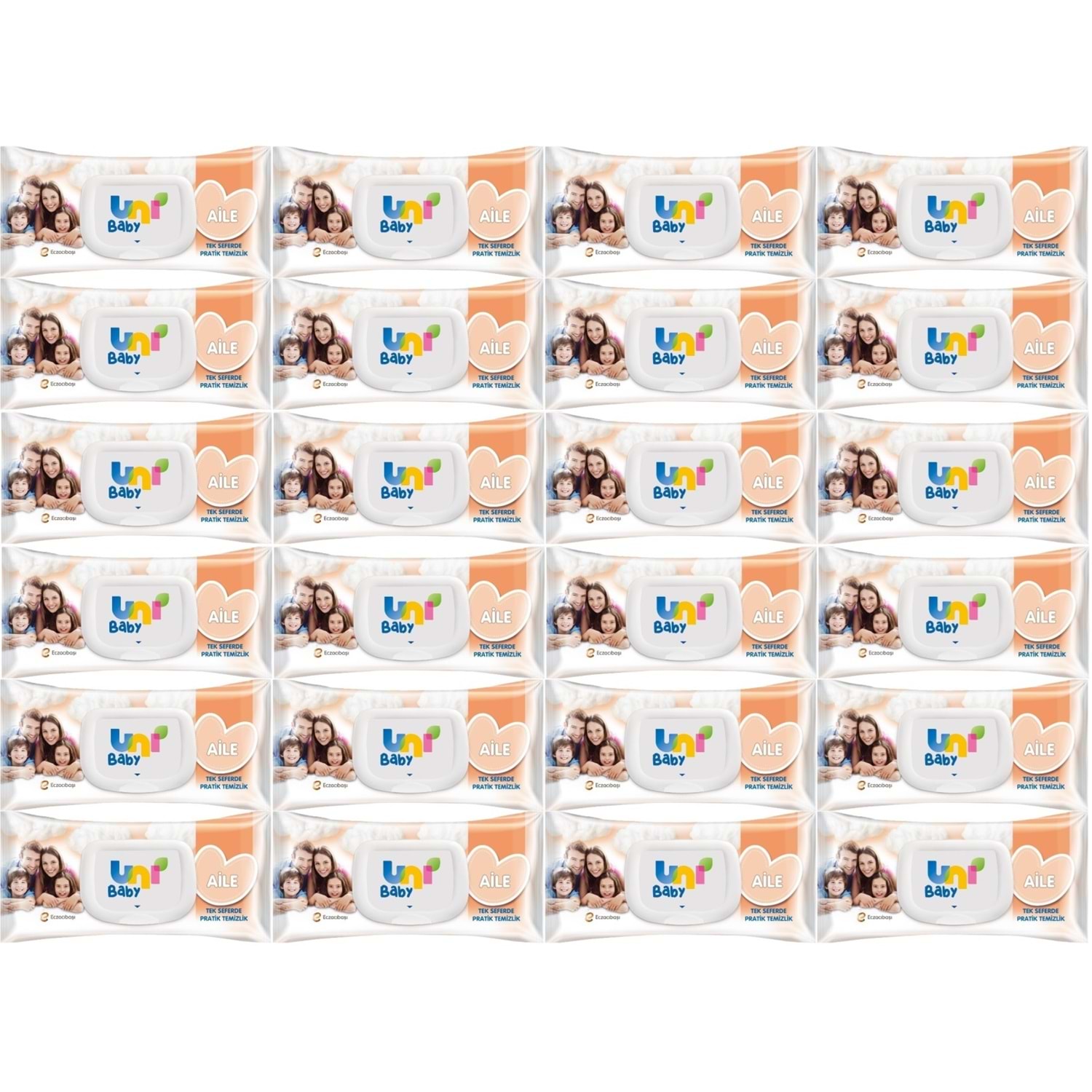 Uni Baby Islak Havlu Mendil 90 Yaprak Aile (24 Lü Set) 2160 Yaprak Plastik Kapaklı