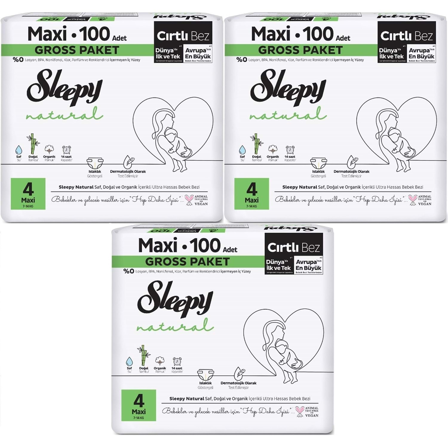 Sleepy Bebek Bezi Natural Beden:4 (7-14KG) Maxi 300 Adet Aylık Ultra Pk