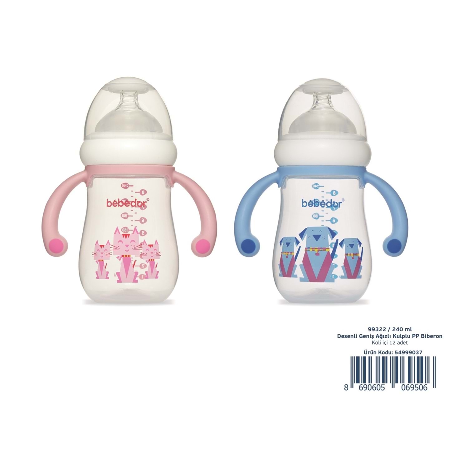 Bebedor Desenli Geniş Ağızlı Kulplu PP Biberon 240ML (Kod:99322) Seçenekli
