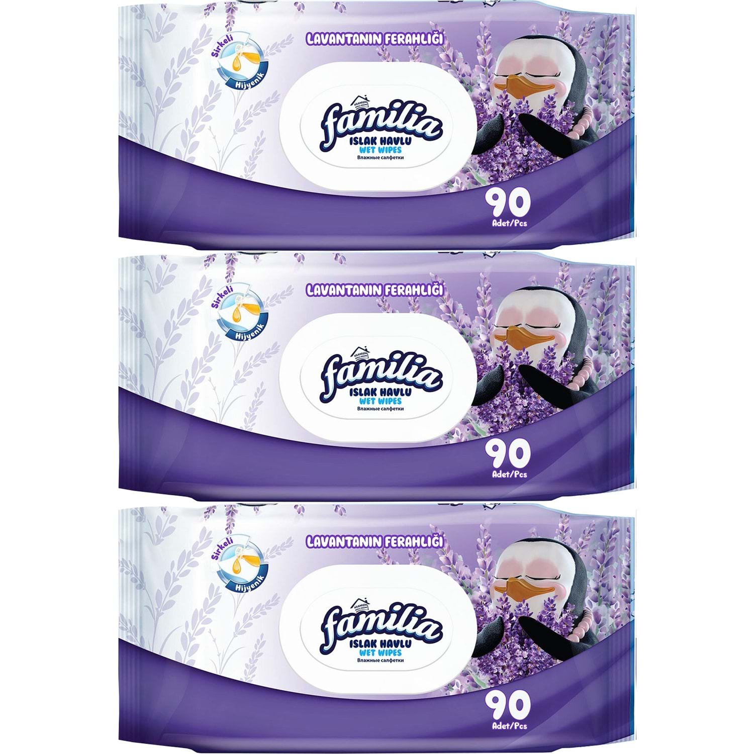 Familia Islak Havlu Mendil Lavantanın Ferahlığı 90 Yaprak Plastik Kapaklı 3 Lü Set 270 Yaprak