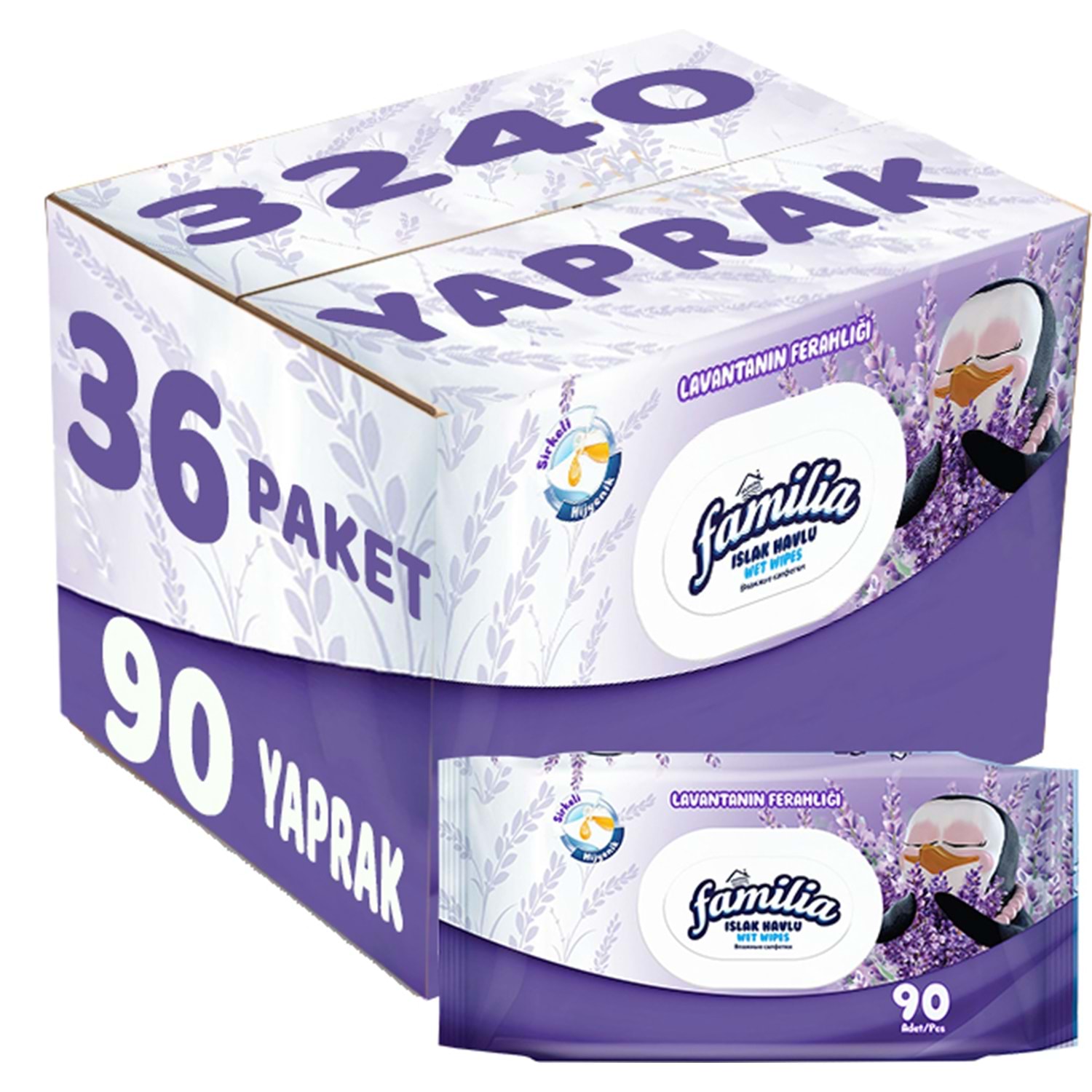 Familia Islak Havlu Mendil Lavantanın Ferahlığı 90 Yaprak Plastik Kapaklı 36 Lı Set 3240 Yaprak