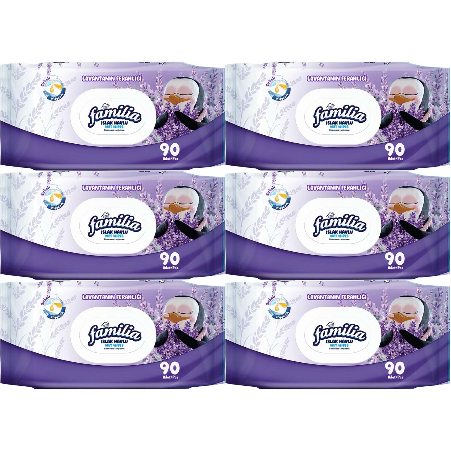 Familia Islak Havlu Mendil Lavantanın Ferahlığı 90 Yaprak Plastik Kapaklı 6 Lı Set 540 Yaprak