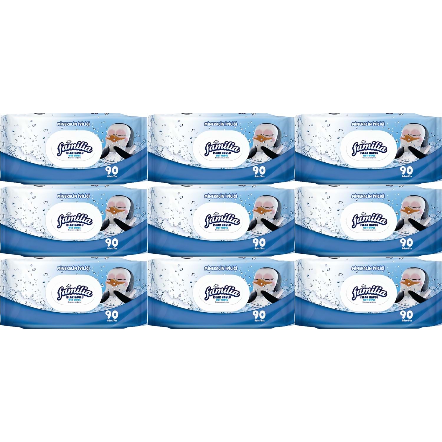 Familia Islak Havlu Mendil Mineralin İyiliği 90 Yaprak Plastik Kapaklı 9 Lu Set 810 Yaprak