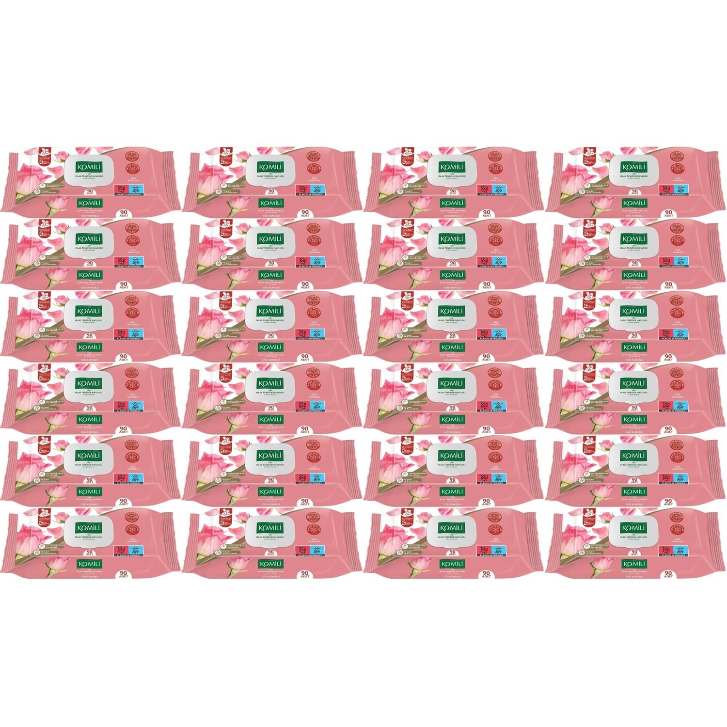Komili Islak Havlu Mendil 90 Yaprak Gül Kokulu (24 Lü Set) Pratik Kapaklı (2160 Yaprak)