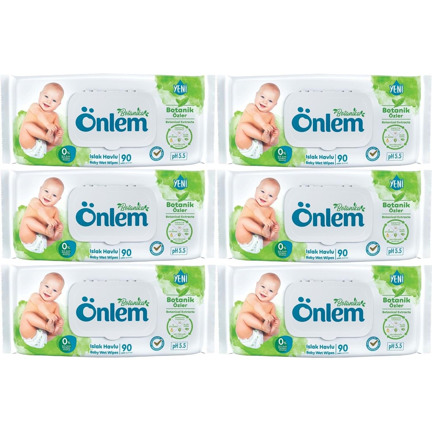 Önlem Islak Havlu Mendil 90 Yaprak Botanika Özlü (6 Lı Set) Plastik Kapaklı 540 Yaprak