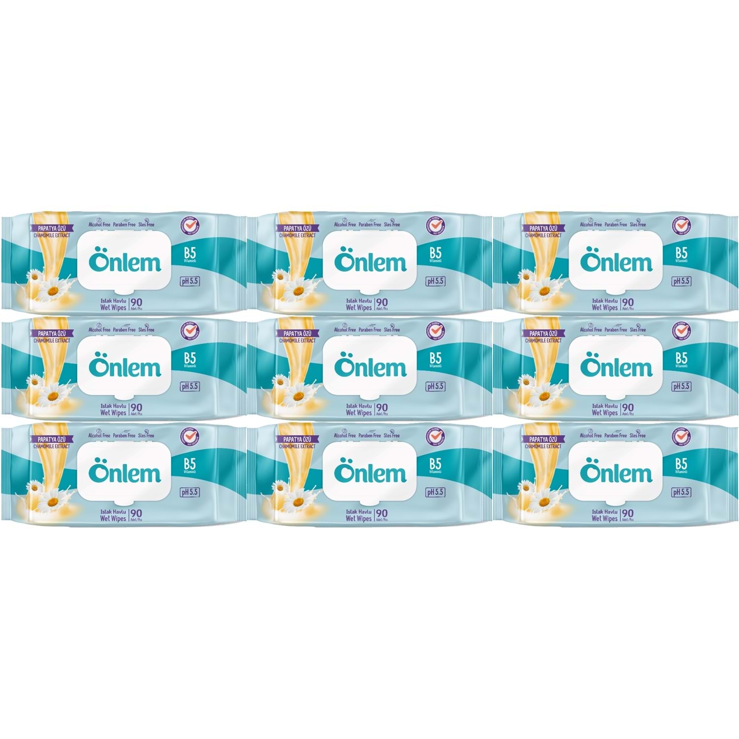Önlem Islak Havlu Mendil 90 Yaprak Papatya Özü (9 Lu Set) Plastik Kapaklı 810 Yaprak