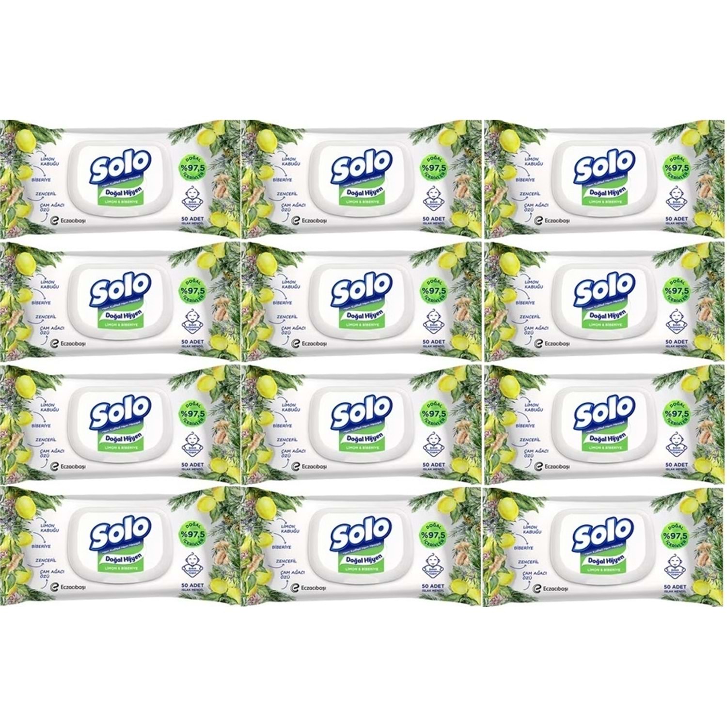 Solo Islak Havlu Mendil 50 Yaprak Limon & Biberiye (12 Li Set) (4PK*3) 600 Yaprak