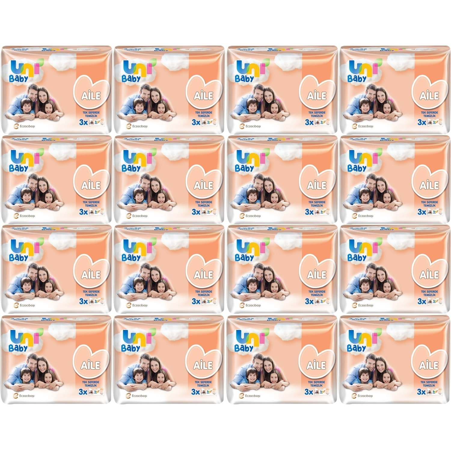 Uni Baby Islak Havlu Mendil Aile 52 Yaprak (48 Li Set) 2496 Yaprak (16PK*3)
