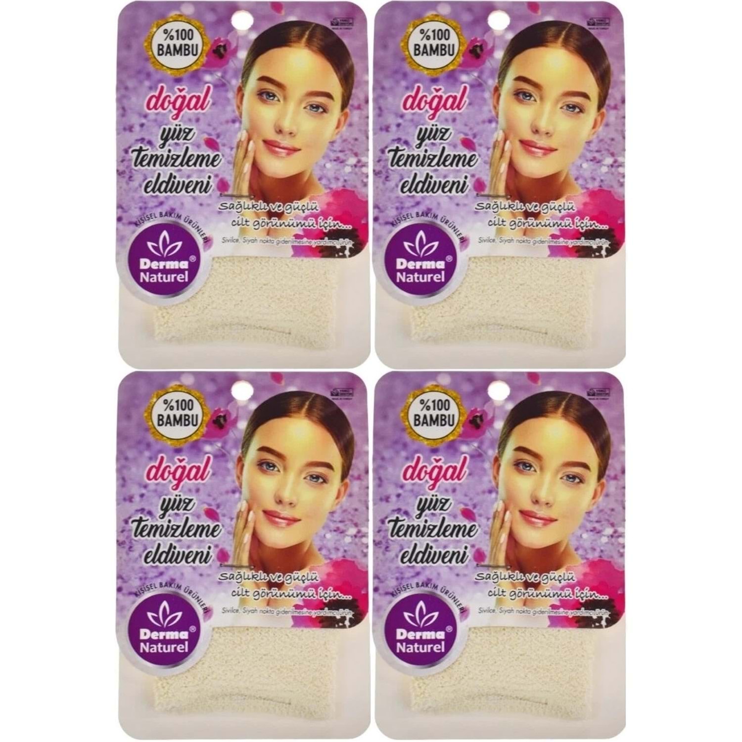 Derma Naturel Bambu Yüz Temizleme Eldiveni MS-32 (4 Lü Set)